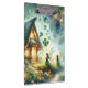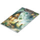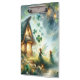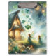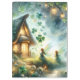A dreamy cottagecore scene unfolds beneath a swirl of glowing shamrocks, soft lantern light, and whispery dandelion seeds drifting through a twilight meadow. Two tiny fairies rest beside a warm, thatched cottage, their luminous wings catching the soft teal and golden hues that dance through the misty night. The artwork blends magical whimsy, gentle folk charm, and serene pastel tones, creating a soothing world that feels both enchanted and timeless. AI generated artwork.