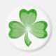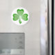 A modern design featuring a shining, green, sparkling shamrock on a white background. Fridge magnet with a customisable design for you to personalise with your own background colour, text, pictures and ideas. Created using original photographs and digital techniques by Jess Perry.