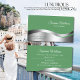 The design features a shimmery wavy silver decoration with fine green glitter decor, on a shamrock green background.