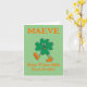 Adorable Custom Saint Patrick's Day Card Featuring A Walking Shamrock On The Cover And Keep Those Irish Eyes Smilin' Greeting. Inside Greeting "Happy Saint Patrick's Day To Ye". May be Customised For That Personal Touch.