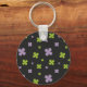 Seamless floral pattern, lucky green and purple shamrocks on black background.