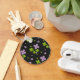 Original seamless floral pattern, lucky green and purple shamrocks on black background.