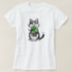A black and white cat holding a three-leafed shamrock in his mouth, for St. Patrick's Day, or just for fun!