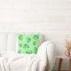 A shamrock is made from a collage of shamrocks, in shades of green, and is printed in various positions on custom pillows. There are multiple shamrocks on one side, and one of these shamrocks on the reverse side. The background colour of light green can be customised.