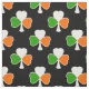 Black fabric with a shamrock pattern designed in green, white, and orange, like the Irish flag.