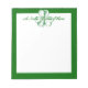 5.5” x 6” white customisable notepad with a green border and an image of a sketched green and white shamrock. See matching notebook. See the entire St. Patrick’s Day Notepad collection in the HOLIDAYS section.