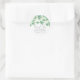 This charming round sticker is perfect for party favours or thank you cards for a “Lucky Little One” St. Patrick’s Day baby shower. “Thank You” appears at the top in elegant handwritten script, with the parent’s name or shower wording displayed below in a classic serif font. Green watercolor shamrocks or clovers frame the design, keeping it festive and on-theme.