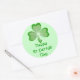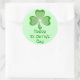 A modern design featuring a shining, sparkling shamrock on a green background and 'Happy St. Patty's Day' written in green. Sticker with a customisable design for you to personalise with your own background colour, text, pictures and ideas. The text can easily be changed using the template provided or click the 'Customise It' button to make further alterations. Created using original photographs and digital techniques by Jess Perry.