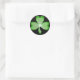 A modern design featuring a shining, sparkling shamrock on a black background. Sticker with a customisable design for you to personalise with your own background colour, text, pictures and ideas. Created using original photographs and digital techniques by Jess Perry.