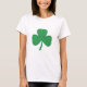 A cute green shamrock decorates this t-shirt. Wear this clover top for St. Patrick's Day, or any day! The design is from original art.
