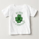 This shamrock design is unique due to being made entirely of smaller shamrocks in various shades of green. The text reads "HAPPY ST. PATRICK'S DAY!" This shirt perfect to reflect your Irish heritage or in celebration of St. Patrick's Day.