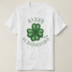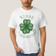 This shamrock design is unique due to being made entirely of smaller shamrocks in various shades of green. The text reads "HAPPY ST. PATRICK'S DAY!" This shirt perfect to reflect your Irish heritage or in celebration of St. Patrick's Day.