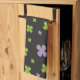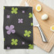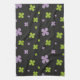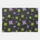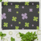 Seamless floral pattern, lucky green and purple shamrocks on black background.