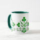 Vintage art of a three-leaved shamrock in Irish green with curly gothic elements along the bottom.