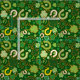 Celebrate St. Patty's Day by using this Shamrocks and Horseshoes fabric for a variety of sewing projects. The design features a repeat pattern with horseshoes, clovers and dots in green, orange, yellow and white.
