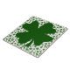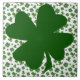 Square ceramic tile with an image of a dark green four-leaf clover on a background of shamrocks and top hats on white. See matching paper plate and coasters. See the entire St. Patrick’s Day Tile collection under the HOME category in the HOLIDAYS section.