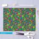 Spread some St. Patrick's Day cheer with this patterned tissue paper. It features simple hand-painted style illustrations of shamrocks, flowers and rainbows. The bright and colourful graphics are set against a dark teal background.