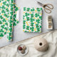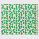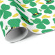 This gift wrapping paper features a fun and festive St. Patrick's Day pattern. The leprechaun's hat, green shamrocks and gold coins appear on a white background.