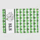 This design features a pattern of green shamrocks and a horse with a horseshoe.