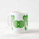 A modern design featuring three shining, sparkling, green shamrocks on a white background. Mug with a customisable design for you to personalise with your own background colour, text, pictures and ideas. Available in all style options. Created using original photographs and digital techniques by Jess Perry.