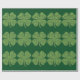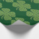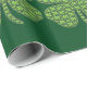 Cute gift wrapping paper features tiny shamrocks on top of a large shamrock, tiled across a dark green background. Great way to present gifts for St. Patrick's Day or to show your Irish!