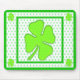 This clip art is a drawing of a shamrock. The leaf is a green opaque with polka dots in white with a green backround. A border around the leaf is a lime and dark green. Green polka dots are added along with a white backround. A Green sparkle border was added. This mousepad makes a great addition for your home or office. Keep the backround white or change to any colour you want.