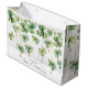Delicate shamrocks and clover falling from the top of this large gift bag with gold beading at the bottom of the clover. Great for St Patrick's Day gift giving and parties.