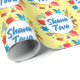 Great pattern for wrapping Rosh Hashanah gifts. Shana Tova with traditional Jewish symbols on pastel yellow background.