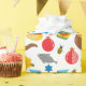 Great pattern for wrapping Rosh Hashanah gifts. Shana Tova with traditional Jewish symbols on white background.
