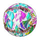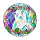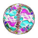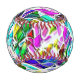 Flamboyant coloured shapes and a little shiny with some shapes that resemble some type of stone that are separated by a smooth white background that resembles some kind of creamy white paint or white grout.
