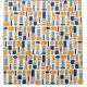 This shower curtain has a mid-century modern design of ovals and rectangles in patterns repeating in the design.