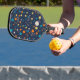 The paddle looked amazing when I received it but upon using it the black ( paint) came off and the paddle no looks like it has measles. It’s all pitted with white spots where I have been hitting the ball. .