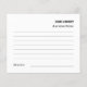 Perfect. Unlike many others I looked at, this one has lines to write on the front and back of card to share a memory... and card just a little larger than some others. Very prompt turnaround. Exactly what I wanted.