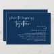 Modern Navy Blue Script themed, wedding elopement invitation card (Share the happiness together). It is perfect for your wedding elopement reception / post wedding celebration party. Add your details in matching font / lettering.