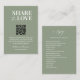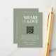 Introducing our "Custom QR Code Wedding Photo Sharing Card" – featured here in a small card size (see other size options) - a personalised and convenient way to encourage guests to share their photos from your special day. This card features a custom QR code that guests can scan to easily access your wedding photo sharing platform. Customise every detail to make this card uniquely yours. Sage Green and white design which you can personalise with a message alongside the QR code. The custom QR code makes it simple for guests to share their photos, ensuring you capture every precious moment from your celebration. Perfect for enhancing your wedding experience and capturing memories, this photo sharing card seamlessly blends style with functionality. Make a statement with this uniquely designed card that adds a touch of convenience to your wedding photo sharing efforts.