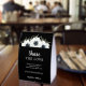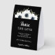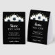 Let guests know to share the love by adding your personal wedding #HASHTAG to their photos. Your details are featured in chic white lettering on a background and elegant watercolor of black and white anemone flowers and leaves on black on these paper table tent signs. MATCHING items in our collection.