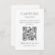 Capture the memories of your special day with this minimalist wedding design that features a stylish font and QR code. Invite your guests to scan the code and upload their photos to a shared online album, ensuring that all the special moments are captured and shared with loved ones. The clean and simple design of the card complements any wedding theme, making it a versatile and stylish choice. The inclusion of a QR code adds a modern touch that is sure to impress your guests and enhance the experience of your wedding day.