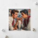On this Valentine's Day card, we see a timeless scene of young love, with two individuals sharing a milkshake in a classic diner, their eyes locked in a moment of sweet connection, reminiscent of a 1950s romance.