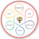 from the Unitarian Universalist Association ,,, A chalice with the word LOVE over the flameand six outstretched arms that create a circle around each of the core values and form a six-petal flower shape. Each arm is a different colour - clockwise they are: Interdependence (Orange), Equity (Red), Transformation (Purple), Pluralism (Blue), Generosity (Green), and Justice (Yellow).
