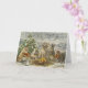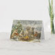 This greeting card features a dog, cat, rabbit, and duck gathered around a cozy campfire on a peaceful farm decorated for Christmas. The warm, festive scene is perfect for holiday greetings, Christmas messages, or thinking-of-you notes. A sweet card for animal lovers.