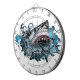 Original design of a shark coming out of the water. Created using pencils, pens and coloured in Photoshop.