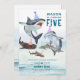 Invite everyone to swim on over with these great shark birthday party designs! This design features a school of festive birthday sharks all wearing fun party hats! Easily edit the age and wording with your birthday party information.