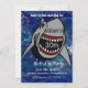 Striking shark birthday invitation. Personalise with your information.