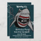 Striking shark birthday invitation. Personalise with your information.