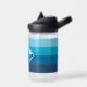 A shark illustration with a background of horizontal lines in different shades of blue covering around the bottle, on the back you can customize
