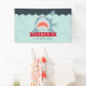 This cute and simple boy's birthday banner features a navy blue background with an open mouth shark under the water and a shark fin above the water. Perfect for shark themed birthdays, pool parties, and swimming parties. Personalise for your needs. You can find more matching products at my store.