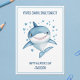 Shark Boys Classroom School Happy Valentine's Day Holiday Card features a cute watercolor shark surrounded by blue hearts, designed in a playful kids' cartoon style. The front of the card displays a funny blue text with Valentine's Day wishes, all framed by a matching blue line on a clean white background. Add a personalised name for a thoughtful and unique touch.