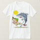 For something really fun this cool design of a shark chasing a boy is perfect. This cartoon design looks great and has a boy being chased by a shark across land with the sun shining brightly. This shark chasing a boy looks great on this mens t-shirt. Perfect for yourself or as a gift