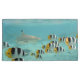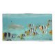 Pillowcases with a shark chasing butterfly fish in the clear blue water of the lagoon of the tropical pacific island Bora Bora of the Tahiti archipelago French Polynesia. Above the water you can see overwater bungalows. Duvet covers in the same design are also available in store (see collection).