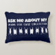 Awesome pillow printed with Ask Me About My Shark Egg Case Collection, and a row of cute shark egg cases. White shark design on a navy blue background.